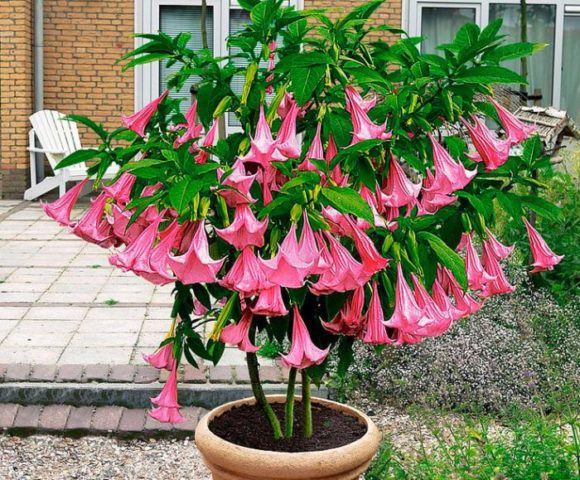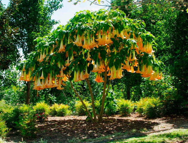 Brugmansia, cuyos esquejes se cortaron en el otoño, florecerá el próximo verano.