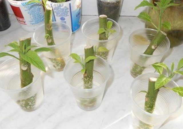 Después de que los esquejes echen raíces, deben trasplantarse a recipientes de plástico individuales: macetas de plántulas. El cuidado adicional de los esquejes germinados incluye todos los procedimientos necesarios para trabajar con plantas: riego, alimentación, control de malezas, etc.