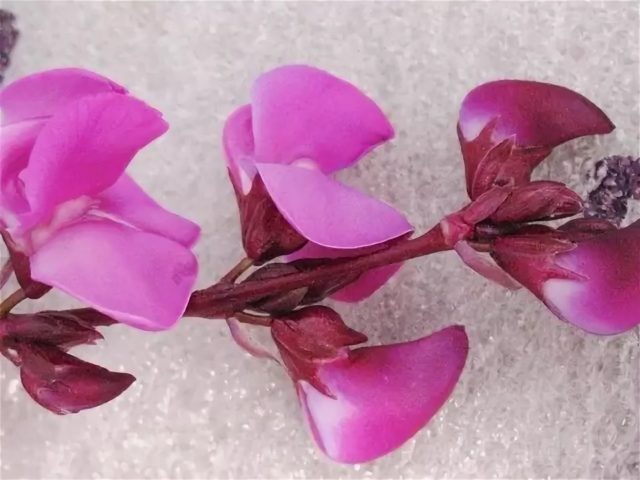 Muchos consideran que los dolichos Ruby Moon (en la transcripción inglesa Ruby Moon) son las más espectaculares de todas las variedades de lilas trepadoras. Esto es especialmente cierto a finales de otoño, cuando nieva. En este momento, los frijoles con un color púrpura intenso se ven muy bien sobre un fondo blanco. Las hojas de esta variedad son verdes, las inflorescencias son de color púrpura brillante.
