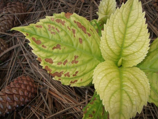Un exceso de humus en el suelo también es peligroso para el desarrollo de clorosis de hortensias.