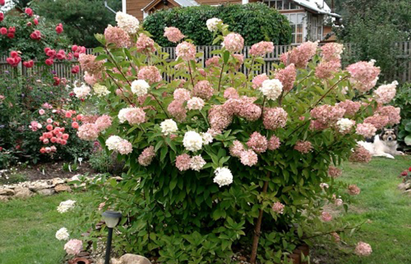 Hydrangea paniculata Pinky Winky en diseño de paisaje