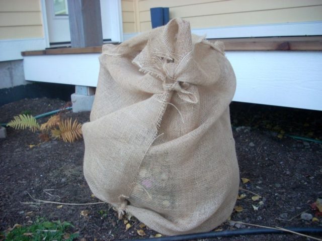 - La hortensia se cubre con la ayuda del material disponible: arpillera, agrofibra.
