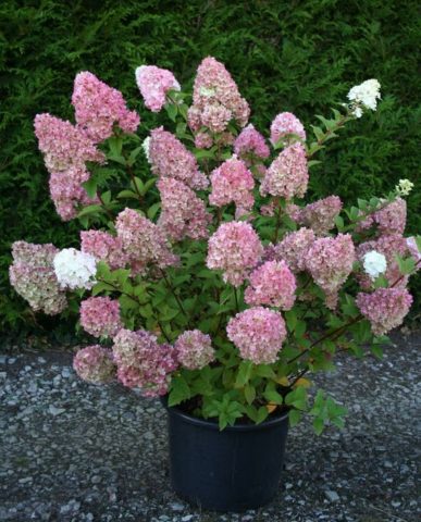 Sunday Fraise (paniculata sundae fraise) es una variedad de hortensias que florece desde mediados de junio hasta septiembre (en el sur, hasta octubre). Da flores exuberantes y muy hermosas (diámetro de hasta 2,5 cm) de tono blanco, rosa claro y rico con pétalos delicados. Además, aparecen primero flores claras, luego se vuelven rosa pálido, después de lo cual adquieren el color más brillante.
