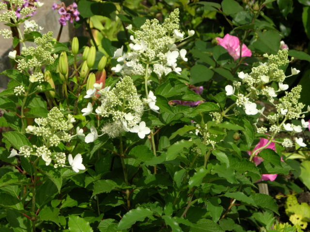 También usan arbustos de hortensias como seto. Esta aplicación es posible debido a la altura de la planta.