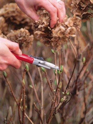 Con el inicio de los días de primavera, el arbusto debe examinarse con especial atención. Se cortan las ramas secas y las inflorescencias restantes. Esto restaurará la hortensia antes de la floración.