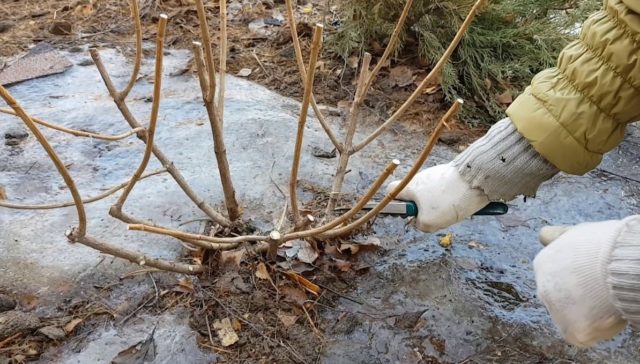 - Limpieza sanitaria del arbusto. Todos los brotes dañados o rotos en invierno se cortan de raíz. Lo mismo se debe hacer con ramitas y brotes de más de 4 años, ya que no forman pedúnculos, solo engrosan el arbusto.