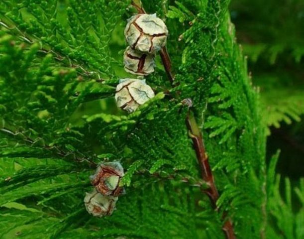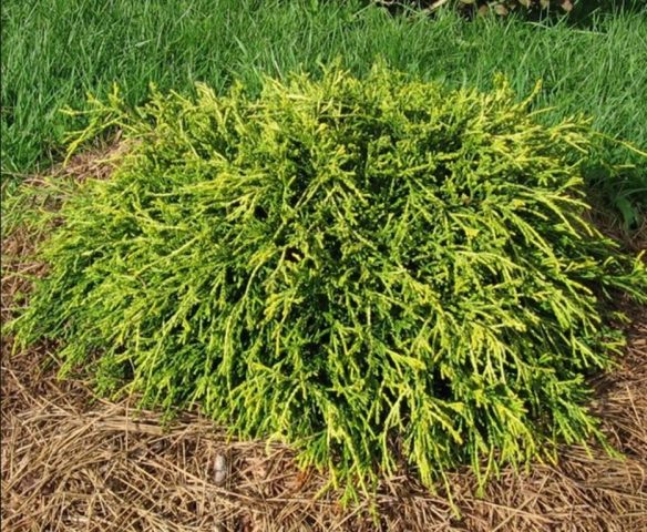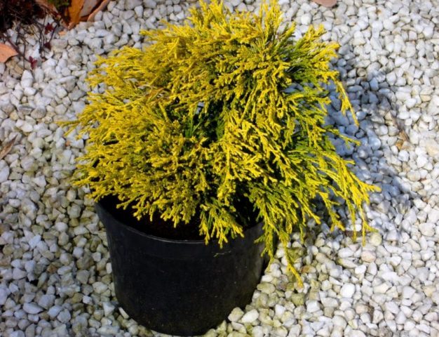 Las agujas doradas brillantes con un aroma débil se iluminan en invierno y se ven elegantes en la nieve blanca como la nieve. A pesar de su lento crecimiento, la planta forma conos en miniatura de color marrón claro con un diámetro de 6 mm a 1 cm en el año de la siembra.