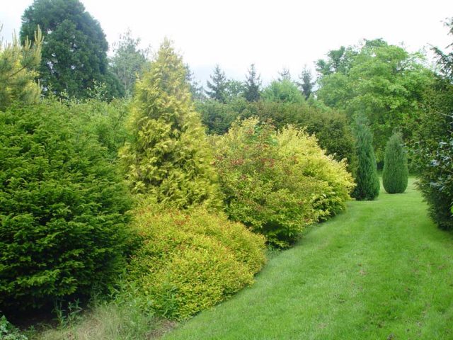 El ciprés del guisante tiene más de 100 especies, que difieren en forma, tamaño y color de agujas. Cada especie es única y apta para crecer en una parcela personal.