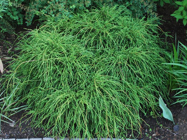 El ciprés de guisante Filifera Nana es un arbusto de coníferas de bajo crecimiento que ha encontrado aplicación en el diseño de paisajes. Arbusto denso y esférico cubierto de brillantes agujas de color esmeralda y pequeños conos de color marrón claro, que maduran en la primera quincena de septiembre.