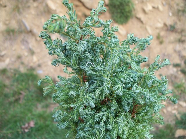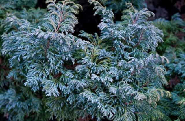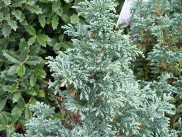 Pea cypress Boulevard es una especie decorativa de crecimiento lento con agujas cónicas estrechas y plateadas azuladas. Se diferencia de otras variedades y se parece mucho a thuja o enebro.