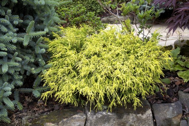 Las agujas doradas brillantes son suaves y lisas, cambiando de color a cobre cuando llega el clima frío. Para que el ciprés del guisante crezca y se desarrolle bien, debe proporcionar: