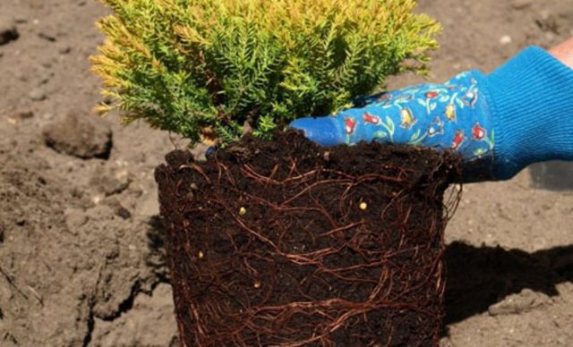 Para que la planta eche raíces y se desarrolle bien, el hoyo de plantación del ciprés del guisante comienza en la primera quincena de octubre. Para esto: