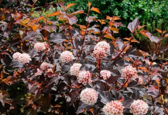 Para crear contraste, se plantan diferentes tipos de vesículas. La combinación de colores rojo, verde y rojo crea espectaculares plantaciones. La purpurea bladdercarp se ve inusual en plantaciones grupales de arbustos y árboles de diferentes alturas, formas y colores.