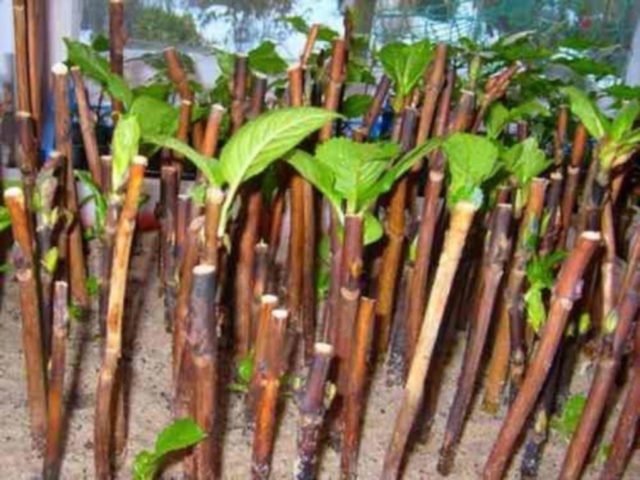Los esquejes se cosechan antes de la floración del arbusto. Corta los brotes frescos, asegurándote de que cada uno tenga hasta tres entrenudos. La altura del corte puede ser de 15 a 25 cm, es necesario quitar todas las hojas inferiores y cortar las superiores por la mitad.