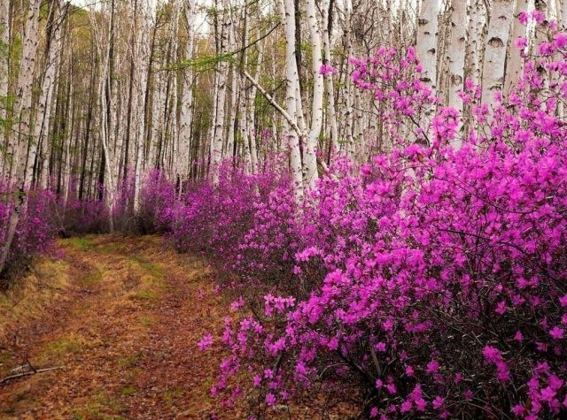 En condiciones naturales, el rododendro dauriano crece en bosques de pinos y caducifolios. Durante la floración, el lugar se vuelve fabuloso y mágico. Los turistas, al ver tanta belleza mágica, no se detienen y arrancan ramas en flor e incluso desentierran brotes jóvenes para plantar en el país, sin sospechar que al hacerlo causan graves daños a la especie. Por esta razón, el rododendro dauriano se incluyó en el Libro Rojo y está protegido por la ley.