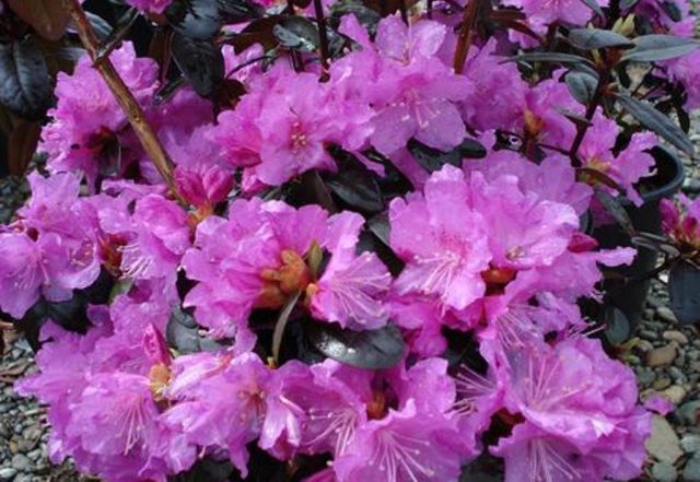 - Élite - un hermoso híbrido obtenido al cruzar el rododendro de Daurian con el rododendro de Karolinsky. Rhododendron Daurian elite es un arbusto alto, alcanza una altura de 4 m.La variedad es resistente a las heladas y de rápido crecimiento. A finales de abril, la planta forma una exuberante corona de flores de color rosa brillante.