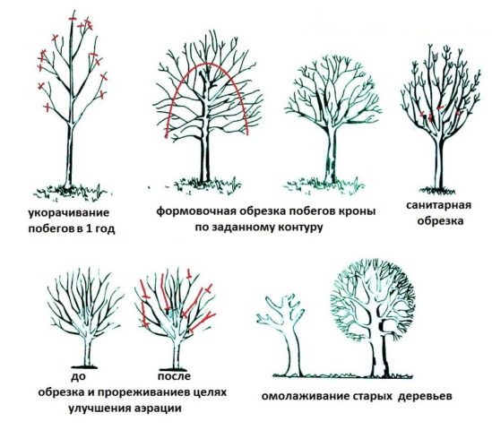 Moniliosis | Todo el árbol se ve afectado, la aparición de crecimientos de color gris oscuro. | Cortar y quemar las partes dañadas del árbol. | nitrafeno (300 g / 10 l de agua) o sulfato de cobre (100 g / 10 l de agua) | Antes de la brotación |