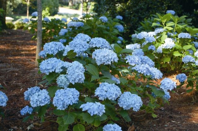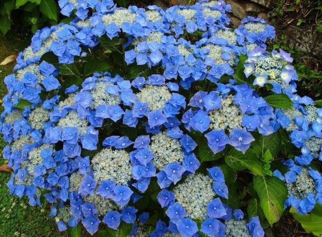 La hortensia azul puede crecer hasta 1,5 m de altura y las inflorescencias esféricas crecen hasta 25 cm de diámetro. La planta cambia el tono de sus flores según el suelo, de azul cielo a púrpura. Los arbustos crecen rápidamente, por lo que con la ayuda de las hortensias, puede transformar la parcela del jardín en varias temporadas.