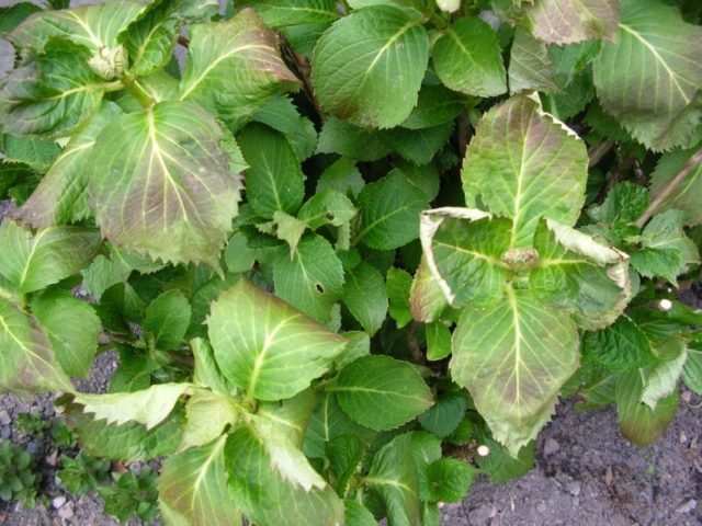 Si las hojas de la planta, bajo la influencia de las plagas, comenzaron a rizarse y ponerse amarillas, aparecieron agujeros o una telaraña ligera en ellas, el arbusto comenzó a desarrollarse peor, es necesario rociar con sulfato de cobre y líquido de Burdeos. Las preparaciones Fitoverm, Iskra y otras también aportan un buen efecto; con una ligera derrota, la hortensia se puede rociar con la infusión habitual de cáscara de cebolla.