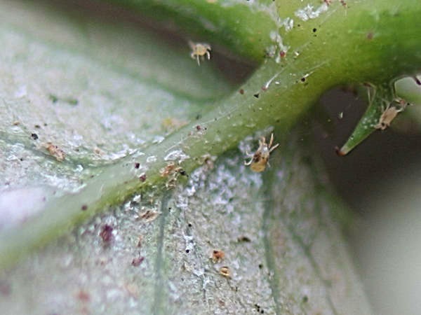 La delgada telaraña que deja la garrapata también interfiere con la fotosíntesis y el crecimiento de los arbustos.