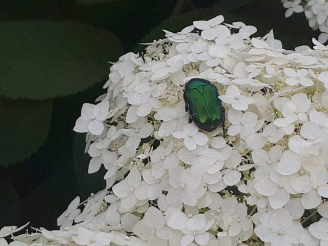 - Puede que los escarabajos - hermosos insectos pueden alimentarse de hojas de hortensias y sus larvas comen las raíces del arbusto;