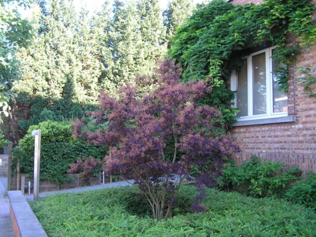 Royal Purple puede servir como fondo, formar un seto, ser un color de acento brillante en el jardín. Scumpia Royal Purple tiene propiedades de recuperación y protección del suelo, se utiliza para crear cinturones forestales protectores y fortalecer barrancos.
