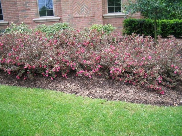 Una plantación en grupo de la misma o diferentes variedades de weigela, en una cantidad de 3 a 4 piezas, se ve inusualmente hermosa. Pero los propietarios de grandes parcelas pueden permitirse plantaciones a gran escala.