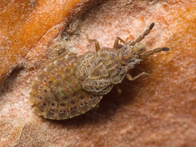 La plaga es un pequeño insecto con una cáscara rojiza o amarilla, que no excede los 3-5 mm de longitud. La chinche del pino vive en la corteza y, debido al color, es bastante difícil verla. Las larvas de insectos hibernan en las raíces bajo un refugio de agujas caídas y restos de plantas, y en la primavera salen y toman para alimentarse de los jugos de las plantas. Bajo la influencia del insecto, la efedra comienza a ponerse amarilla y pierde vitalidad, las agujas se debilitan y se caen.
