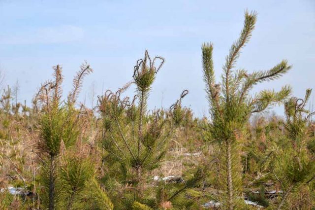 Las moscas sierra, insectos dañinos, prefieren posarse en pinos y abetos. El principal peligro no son los insectos adultos, sino numerosas larvas que se alimentan de agujas y brotes jóvenes. Bajo la influencia de la plaga, la efedra puede perder completamente sus agujas.