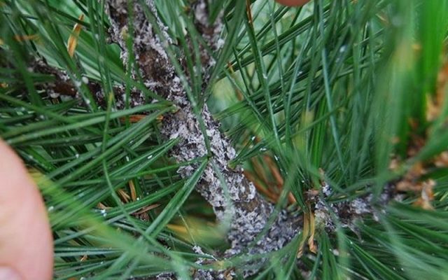 El tratamiento del pino del insecto escama se lleva a cabo con insecticidas: Karbofos, Mospilan y otros. Es necesario rociar el árbol en la primavera antes de la formación de las yemas, en un momento en que las plagas son más vulnerables y el pino aún no ha sufrido daños graves.