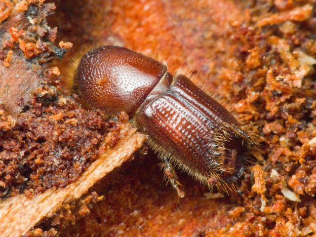 Estos insectos son plagas de la corteza de pino, aparecen en los troncos y en las raíces de la planta y son especialmente peligrosos para las plántulas y árboles debilitados. El escarabajo de la corteza roe a través de pasajes delgados dentro de la corteza, se reproduce activamente, permanece casi imperceptible y durante la temporada puede dar hasta 3 generaciones.