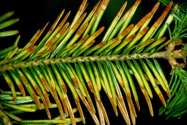 El tratamiento de la enfermedad se lleva a cabo rociando con preparaciones fungicidas en abril o mayo, durante el crecimiento de agujas jóvenes en los brotes. Para obtener el mejor efecto, es mejor rociar 2-3 veces para eliminar por completo las esporas del hongo.