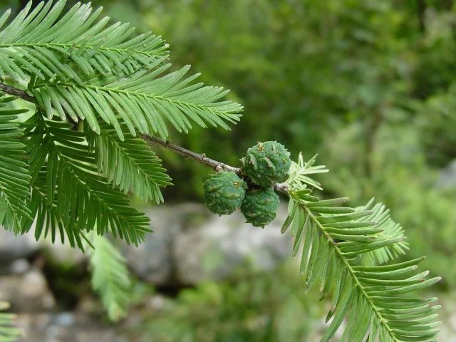 En los brotes de ciprés, también maduran conos verdes redondeados con un diámetro de 1,5 a 4 cm, que se forman a partir de escamas dispuestas en espiral. El taxodio es una planta monoica. Los conos femeninos crecen en los extremos de los brotes. Después de madurar, se vuelven marrones y se desmoronan. Hay 2 semillas debajo de las escamas. Los conos masculinos se encuentran en las ramas superiores del último año, cuya longitud es de aproximadamente 10 a 14 cm.