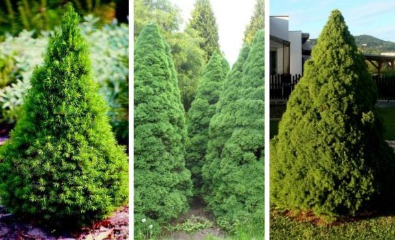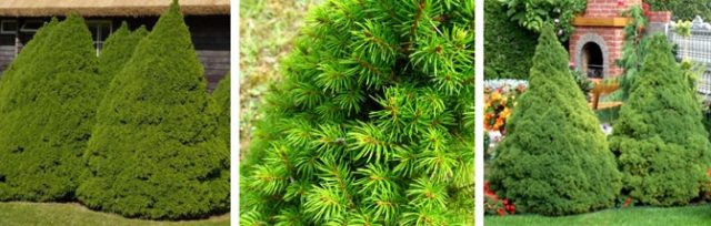 El abeto canadiense (Picea glauca), gris o blanco crece en las montañas de América del Norte. En cultivo, sus variedades enanas, obtenidas como resultado de una mutación somática y una mayor consolidación de las características decorativas, se han generalizado. El abeto canadiense Konica es el más popular de estos.