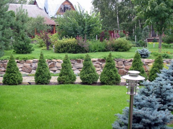 Un árbol ubicado cerca de una valla de piedra o metal o un parapeto puede perder sus agujas en verano y secarse como resultado del sobrecalentamiento. Esto debe tenerse en cuenta al plantar Koniki.