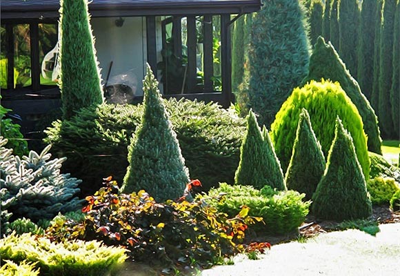 En cualquier caso, las piceas canadienses enanas deben usarse con cuidado en un jardín paisajístico. Con una composición inepta, Konica puede parecer ridícula allí.