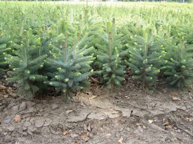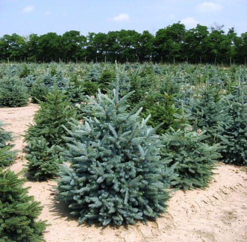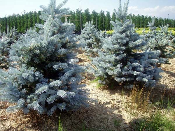 Las plántulas de la misma edad cultivadas en el mismo vivero son muy similares entre sí; esta es una característica de la variedad. Si necesita plantar un callejón de coníferas, Misty Blue es perfecto: prácticamente no tiene que cortar árboles para darles una forma uniforme.