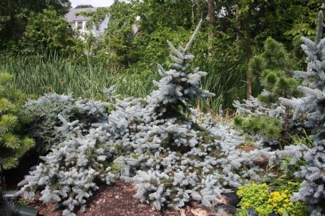 - la variedad enana Mister Caesarini se distingue por una forma de cojín y agujas azul verdosas;
