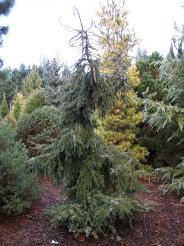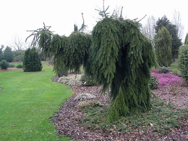La péndula crecerá bastante, y su conductor central, aunque fuerte, es solo en comparación con otras piceas lloronas, el sistema de raíces es superficial. Por lo tanto, el sitio de plantación debe protegerse de los fuertes vientos, de lo contrario, simplemente arrancará el árbol.