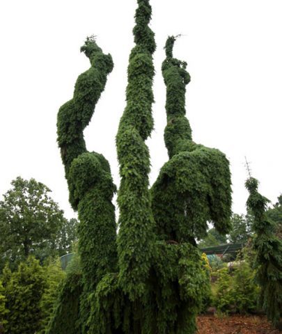 Por lo general, las formas llorosas sin soporte se tumban en el suelo y continúan su vida, convirtiéndose en una planta que cubre el suelo. No ese abeto Pendula serbio. Si no lo dobla deliberadamente hacia el suelo, el conductor central se levanta. Es cierto que elige un "camino sinuoso" para esto. El tronco está curvado de forma extraña, por lo que es imposible encontrar dos Pendul idénticos que no estén atados al soporte.