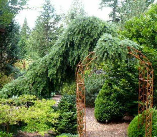 Si se elige un buen conductor, y se ata constantemente a un soporte sólido, el abeto Pendula serbio formará un árbol cónico estrecho con ramas flexibles que cuelgan a lo largo del "tronco". Crecen tan densamente, formando un dosel impenetrable que es imposible ver el ladrido del líder.