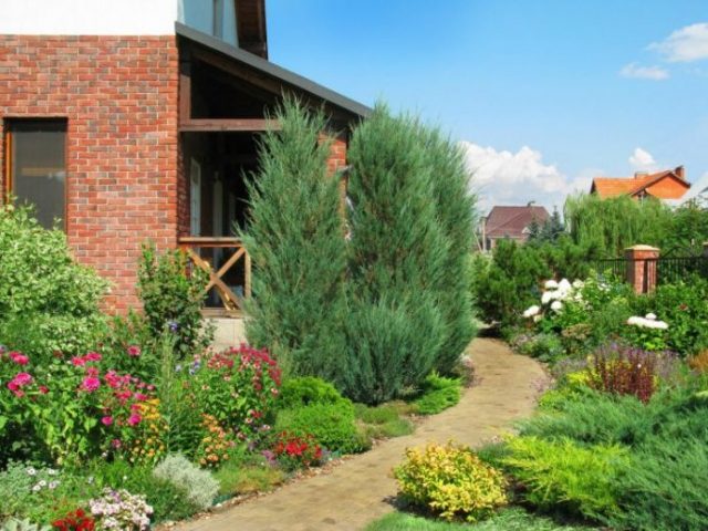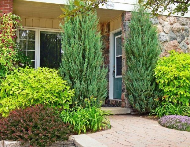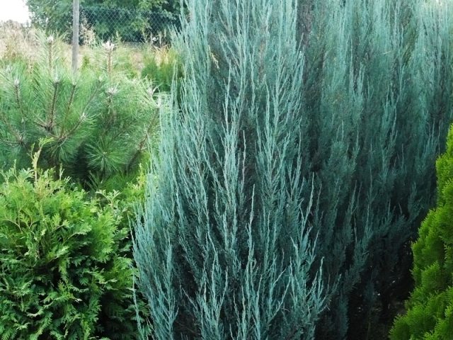 Pero los enebros rocosos con una copa de forma ancha, por ejemplo, Munglow y Wichita Blue, se verán bien como plantas focales únicas. La mayoría de ellos están plantados en jardines románticos y naturales. Puedes formar un seto a partir de ellos.