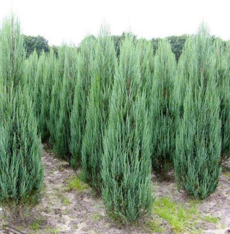 El uso en paisajismo depende de la forma de la copa del árbol. Las variedades de enebro de acantilados como Skyrocket o Blue Arrow se plantan en callejones y a menudo se plantan en jardines formales. En grupos de paisajes, rocallas, jardines de rocas y macizos de flores, pueden servir como acento vertical. Con una planificación adecuada del jardín, nunca se utilizan como tenia.