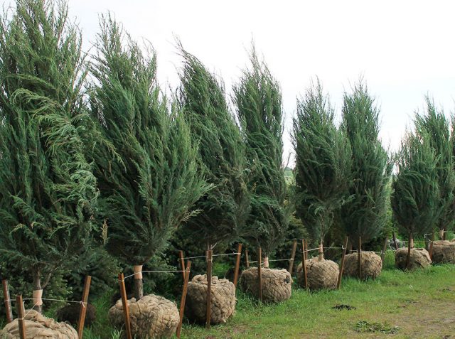 El sustrato en el recipiente o terrón debe estar húmedo, las ramitas se doblan bien, las agujas, cuando se frotan, emiten un olor característico. Si la siembra no se realiza inmediatamente después de la compra, deberá asegurarse de que la raíz y las agujas no se sequen por su cuenta.
