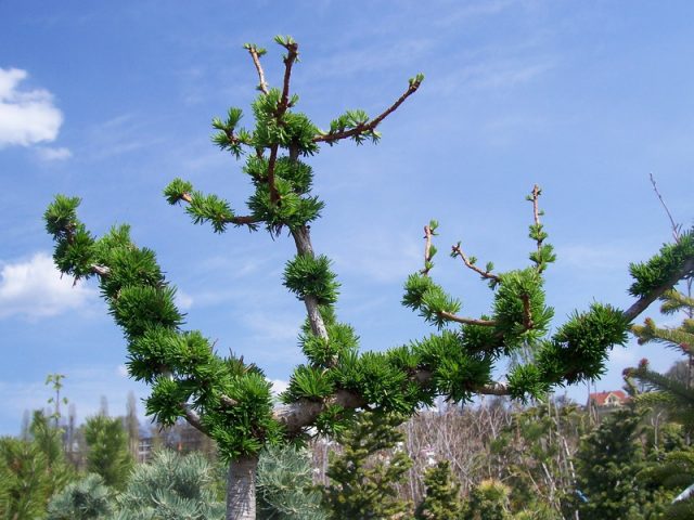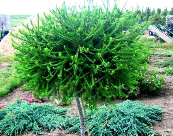 El contorno de la copa de un árbol conífero depende no solo de la especie y la variedad, sino también de la edad.El alerce común a una edad temprana tiene una corona alargada cónica. Pero con el paso de los años, las ramas del árbol crecen y la copa adquiere una forma redondeada u ovoide.