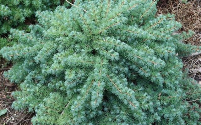 La variedad es una variedad japonesa con una altura máxima de aproximadamente 2 m en un tronco y un diámetro de corona de aproximadamente 1 m. Tiene agujas muy hermosas: en la temporada de verano, la Blue Dwarf tiene un tinte verde azulado de la corona, y en el otoño sus agujas se vuelven de un naranja brillante.