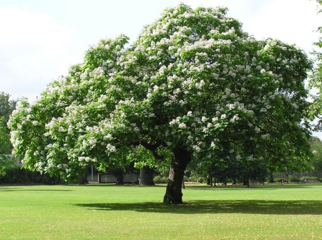 Catalpa es hermosa, una cultura de jardín nativa de América del Norte, que es un árbol extenso con inflorescencias blancas sueltas. En el curso del trabajo de mejoramiento, la planta se adaptó para el cultivo en las condiciones del centro de Rusia y la región de Moscú. Al mismo tiempo, cuidar un cultivo implica calentar las plantas jóvenes para el invierno, pero la catalpa es hermosa: el árbol es bastante modesto.