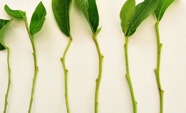Los esquejes para la cría de hermosas catalpas se cosechan a mediados de finales del verano. El procedimiento consta de los siguientes pasos:
