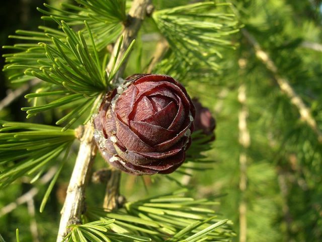 La floración en alerce, dependiendo del área de crecimiento, ocurre de abril a mayo y dura aproximadamente 1,5 semanas. Aparecen nuevas agujas aproximadamente al mismo tiempo. El alerce siberiano floreciente no es tanto espectacular como interesante. Las flores masculinas tienen la apariencia de espiguillas amarillentas casi invisibles. Se encuentran con mayor frecuencia en brotes jóvenes anuales. Pero las protuberancias femeninas crecen verticalmente hacia arriba y tienen un atractivo tinte rojizo-rosado.