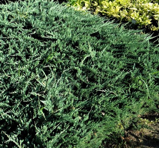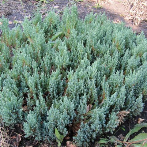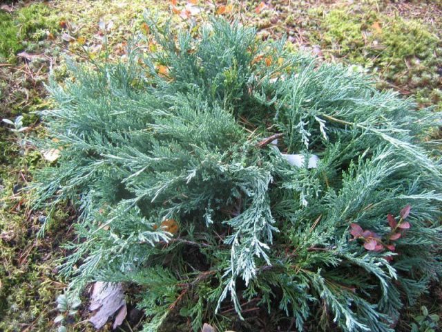 Variedad rastrera de enebro azul con densas agujas. Creado en 1930 por criadores estadounidenses. Las ramas y los brotes laterales están fuertemente extendidos a los lados. La planta a veces se usa como cultivo de suelo. La altura del arbusto es de 30 cm. Las agujas son pequeñas, en forma de aguja, ligeramente presionadas a las ramas. Después de la primera helada, el tinte azul cambia a violeta.